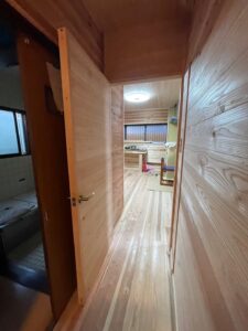 多摩産材杉を活かした無垢床と壁材。天井材には桧がふんだんに使われます。