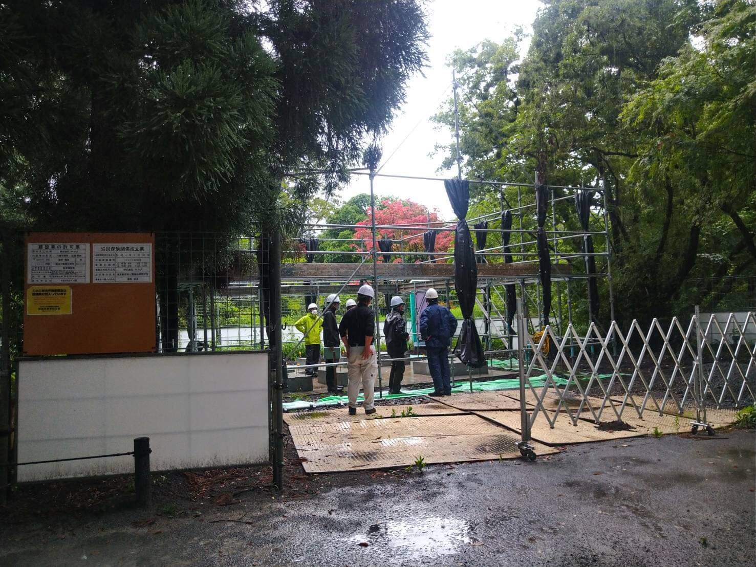 植物公園の休憩舎上棟現場に納品のため、早朝から積込み。あいにくの天気てなので、雨が止むまで荷を降すのを待たなくてはなりません。
