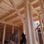 木の家づくりに精通した工務店の職人たちの腕で手際良く上棟。