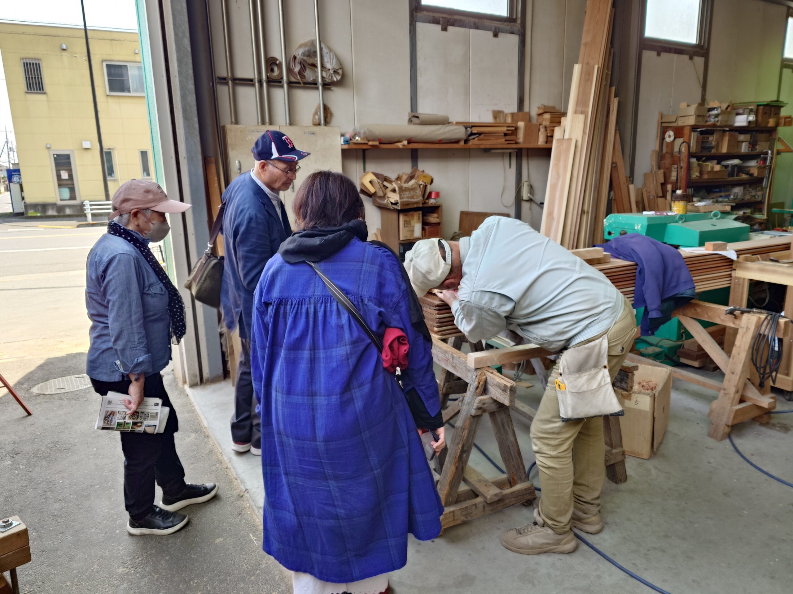 加工場では無垢板を活かした家具作製の様子も目を輝かせてご覧頂いていました。職人魂が喜んでおられたことでしょう。