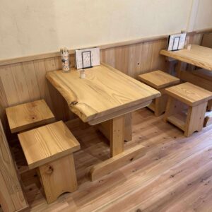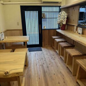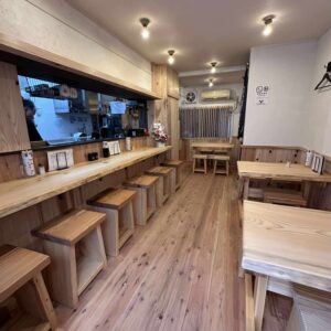 今回の出店は二軒目。一軒目はカウンターと床のリノベーションをさせて頂き、今回は丸々多摩産材を活かす、心地よい空間となりました。