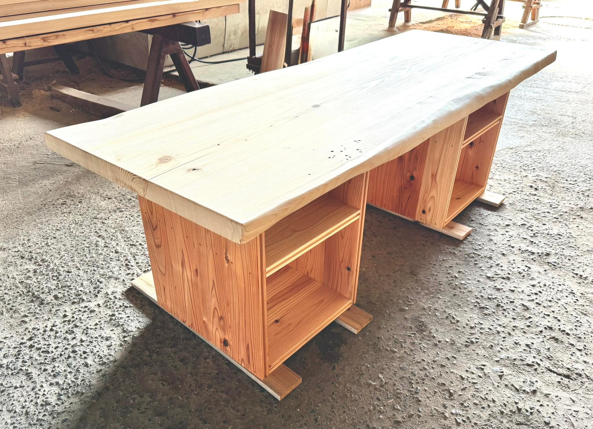 7月にご発注頂き、天板の乾き待ちのため長らくお待たせいたしたオリジナル家具が完成しました。デザインはお客様のご要望通り、製材所がつくる家具は無垢材オンリーです。