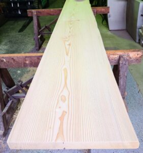 青梅産、小澤酒造の山から届いたモミの木のカウンター。新橋の立ち飲み居酒屋へ納めます。