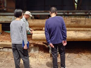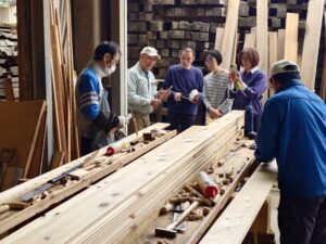 『製材は、鋸をどこにいれるのか、その向きや順番、一度鋸を入れたあとなぜもう一度舐めるのか、、、』等々、超仕上げの鉋屑の厚みの違いなどにも気付き沢山の質問の数々。その一つ一つに丁寧にお答えさせて頂きました。
