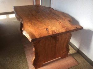 銘木と言われる優良材地域の無垢板をテーブルにして並んでいるのを、こだわりの家具店で見かけます。