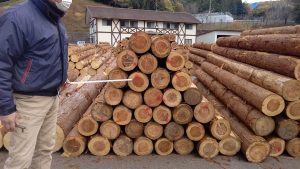 多摩産材の市ならここ、多摩木材センターに午後の競りの下見にきました。流石に素晴らしい材が集まっていました。