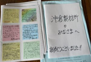 多摩地域東部の小学校より生徒100人の社会科見学をお引き受けし、子供達からの思いが届きました