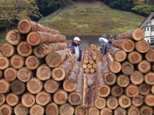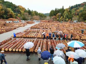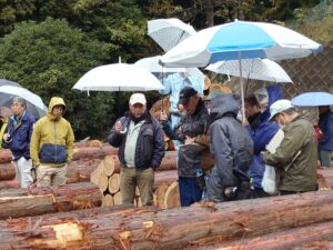 民間では、良い木を出そうと意識して出材するが、東京都は皆伐事業のため、伐り出す山の事情により今回は良質材は少なめでした。