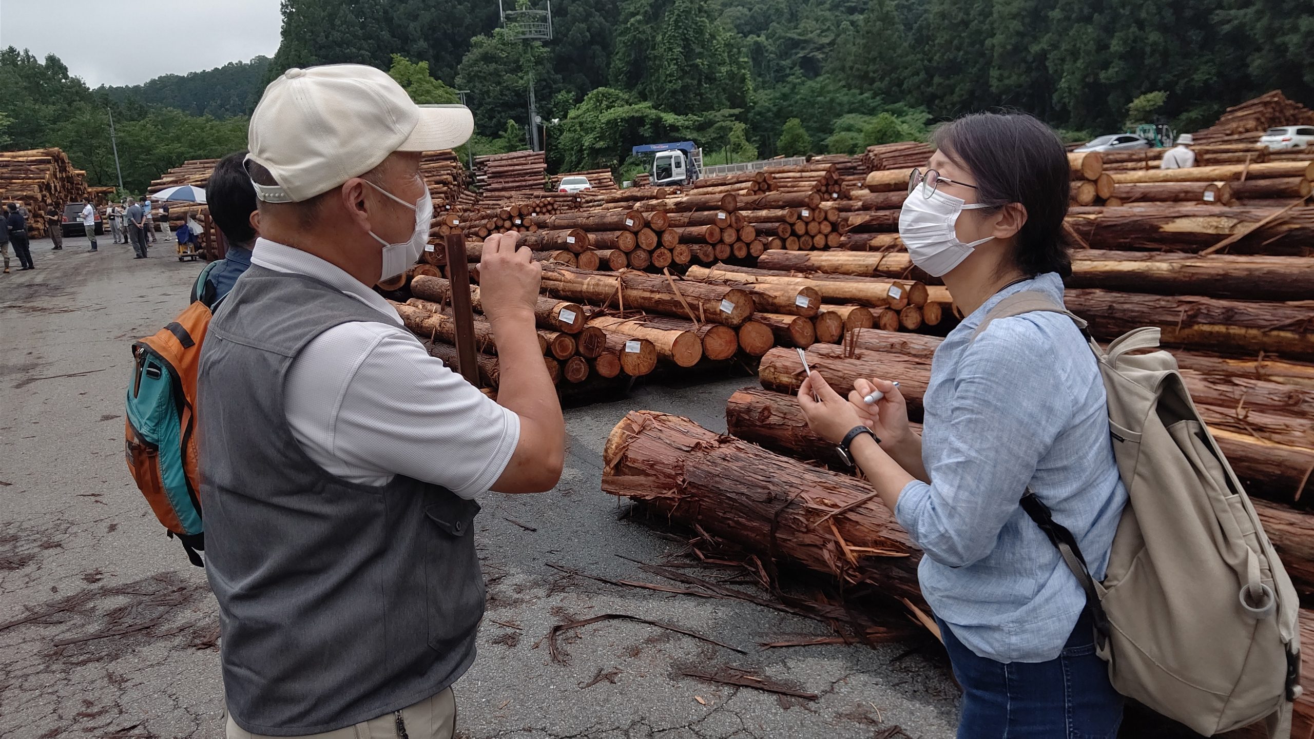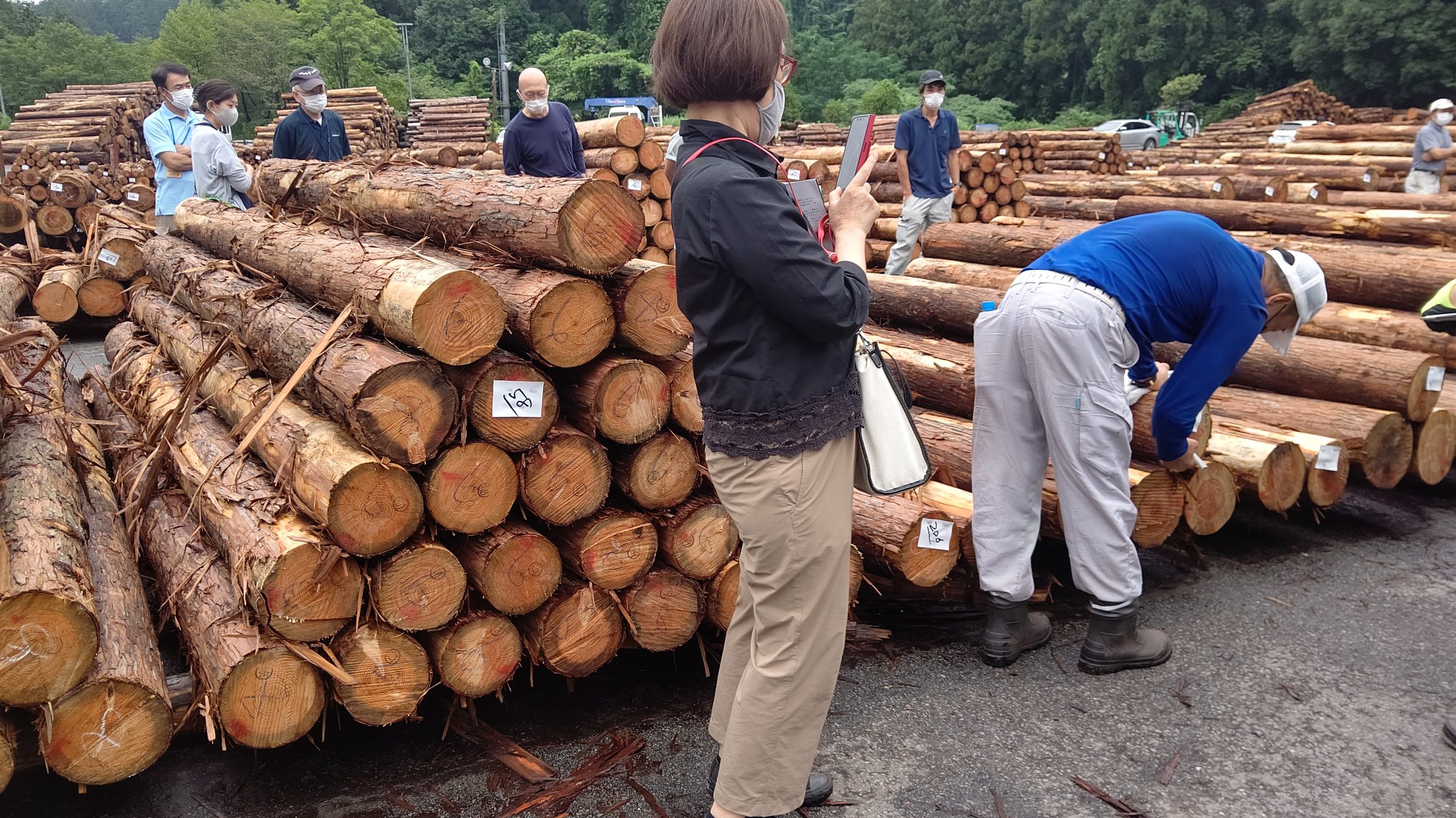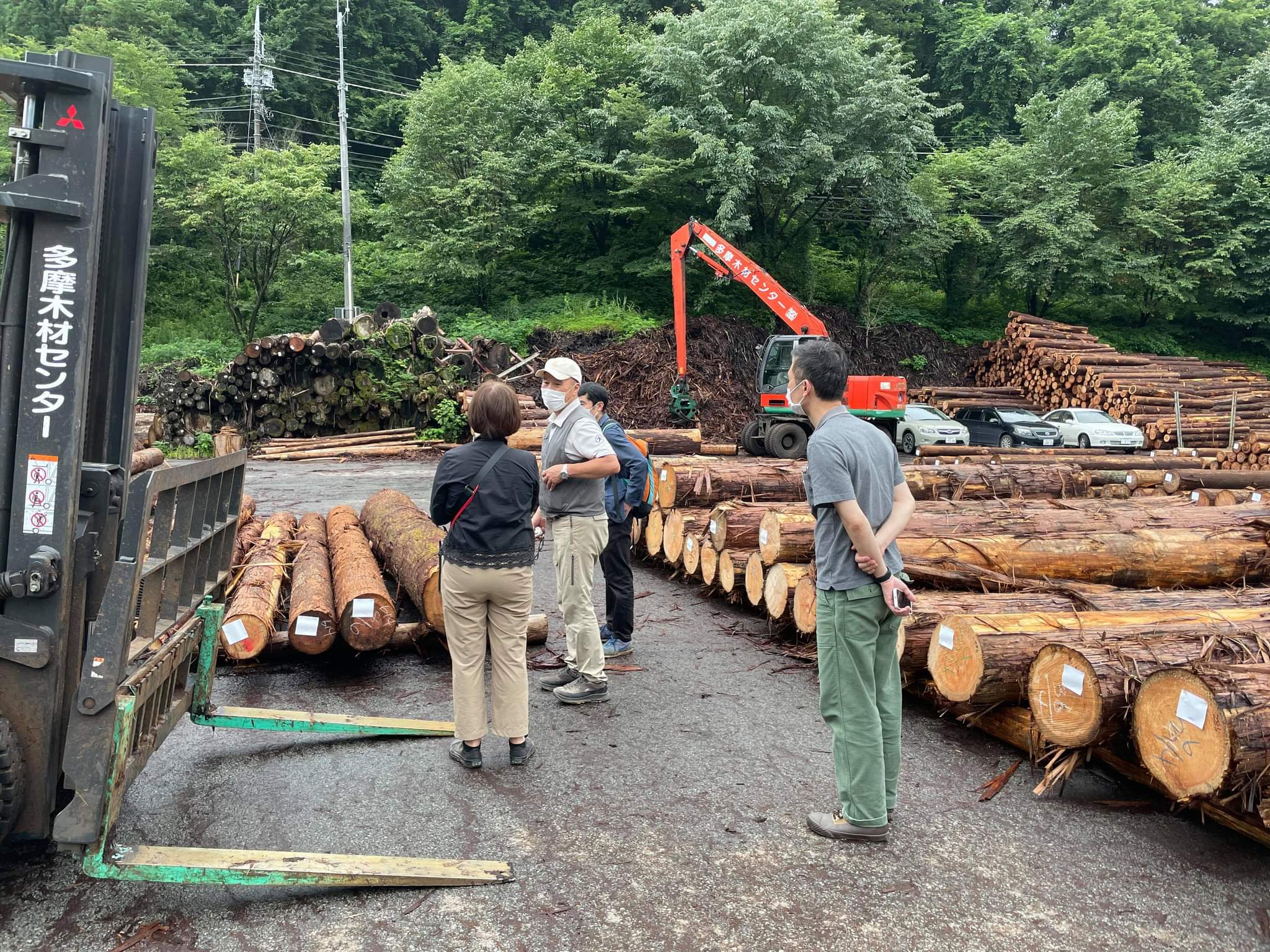 国産材の木の家・Ms(エムズ)建築設計事務所の三澤 文子先生とそのチームスタッフの皆さまがご来社くださいました。製材所の現状と多摩木材センターの市をご案内させて頂きました。